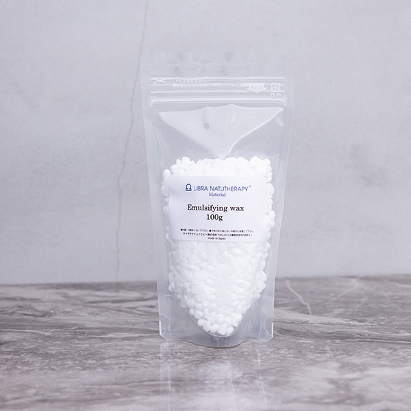 分離してしまう水と油を乳化させるのに使い、アロマオイルを使った手作りコスメに欠かせない基材です。