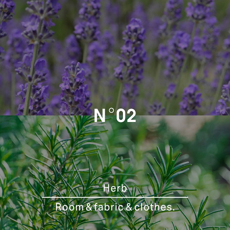 3つのアロマオイルのハーブらしい芳香に、ラベンダーのおだやかな甘さとペパーミントのクールな香気が交わり、やさしくも清々しいこころ落ち着く香りに仕上げました。